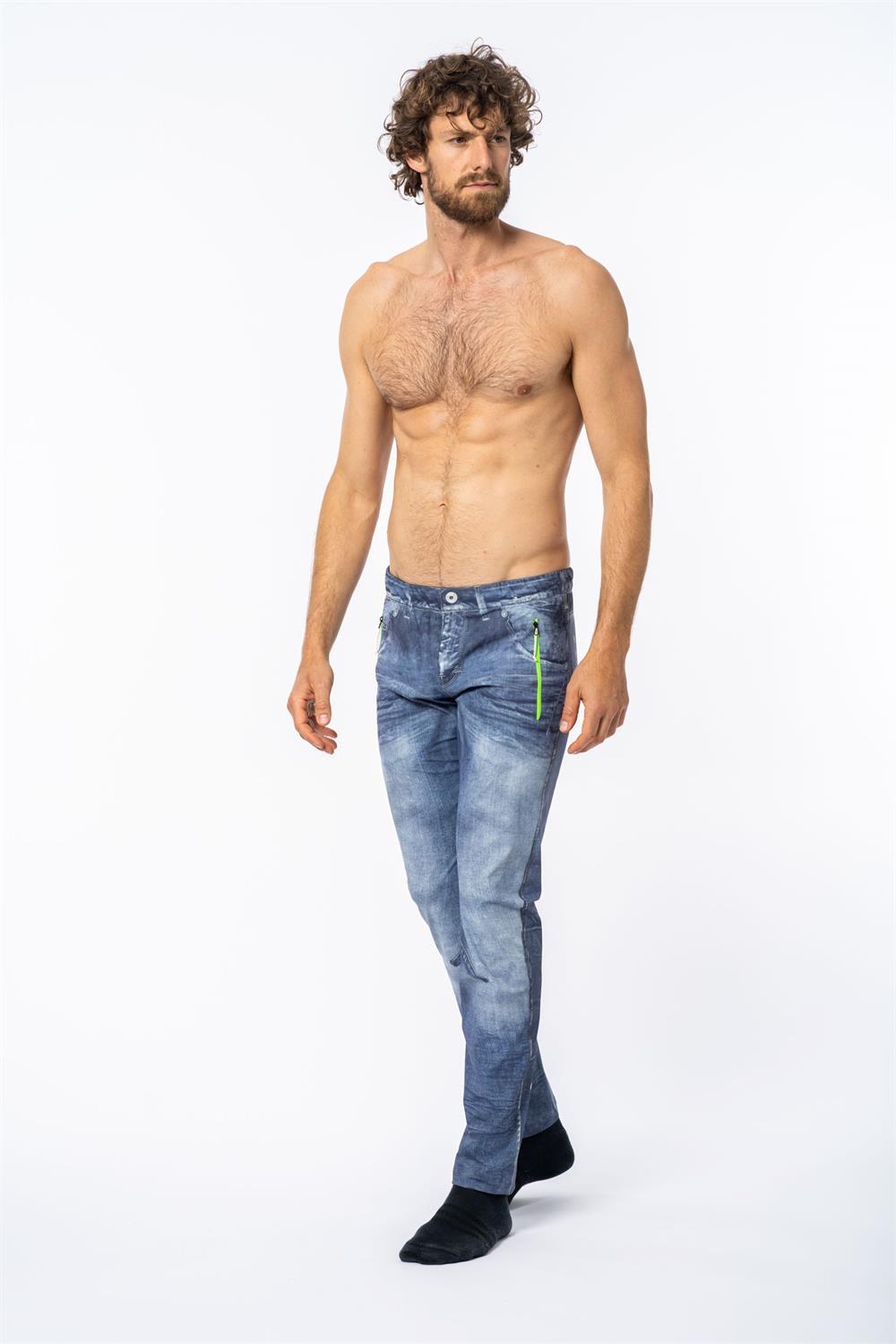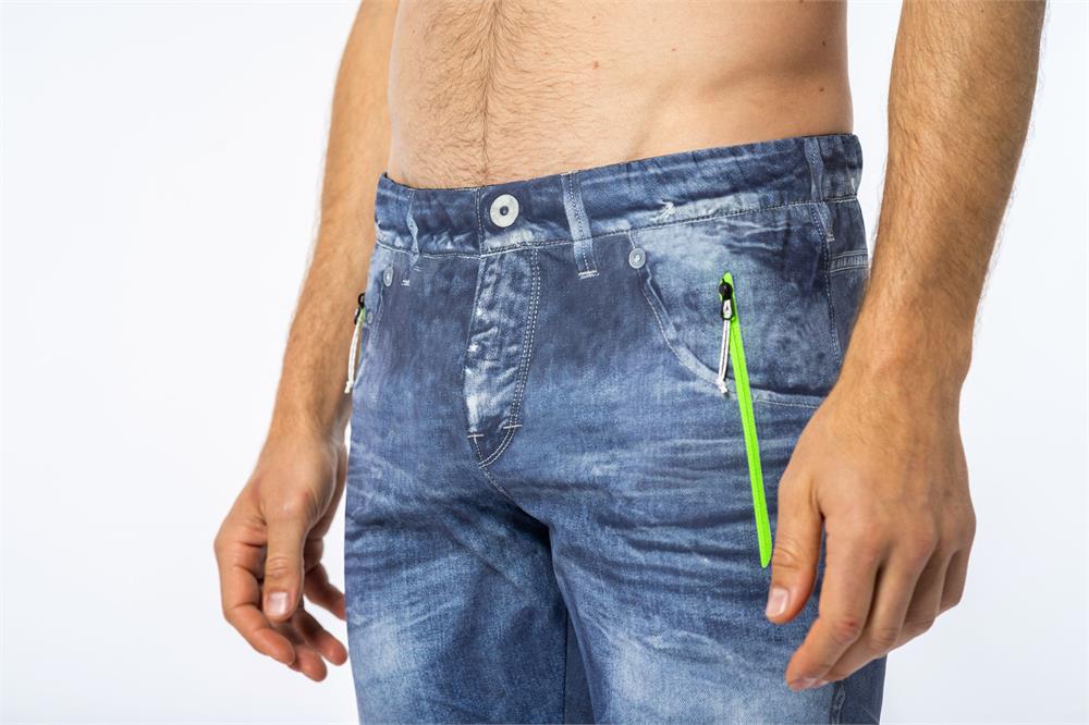 The Super Pant represents the perfect fusion of fashion and functionality in the outdoor world. Extremely elastic, breathable, and comfortable for all types of outdoor activities, it also stands out with its stylish denim print, rarely seen in mountain apparel. Made from bi-elastic Stretch Series fabric, it features an authentic vintage jeans effect achieved through a detailed printing process. Each piece is hand-cut to align the prints with the seams. Equipped with laser-cut side pockets and a rear pocket with bonded zip closures, a fully printed jeans-style design, and an elastic waistband.