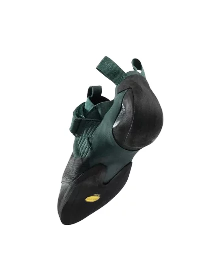 Системата за закопчаване включва две велкро ленти, които осигуряват сигурно и персонализирано прилягане. Твърдата междинна подметка подобрява стабилността при стъпване на ръбове, а специално разработената гума предлага отлично сцепление и триене на различни скални повърхности.