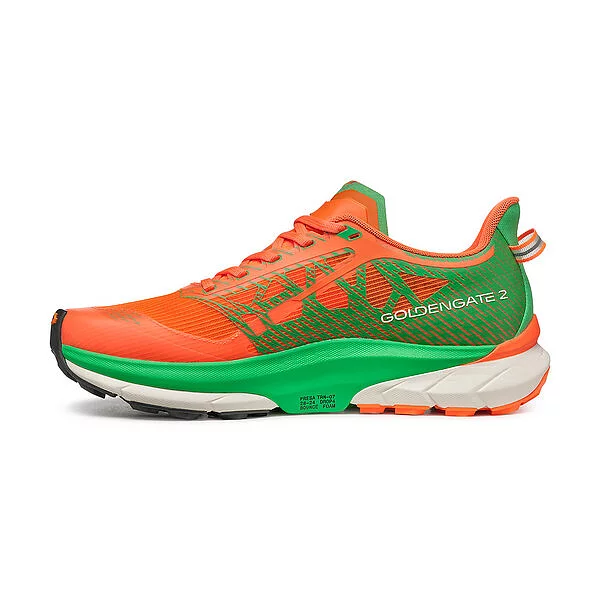 GOLDEN GATE 2 ATR е изключително гъвкава обувка подходяща за различни терени, проектирана и създадена за средни и дълги разстояния. В сравнение с предишната версия, мрежата е подобрена, което я прави по-устойчива и дишаща, междинната подметка Bounce Foam осигурява по-еластична реакция. Геометрията на външната подметка I-Respond позволява по-плавна и ефективна крачка. Тези ключови характеристики правят тази обувка подходяща за спортисти с всякакво тегло и ниво на опит, които просто търсят надеждна и удобна обувка подходяща за ежедневните им тренировки.