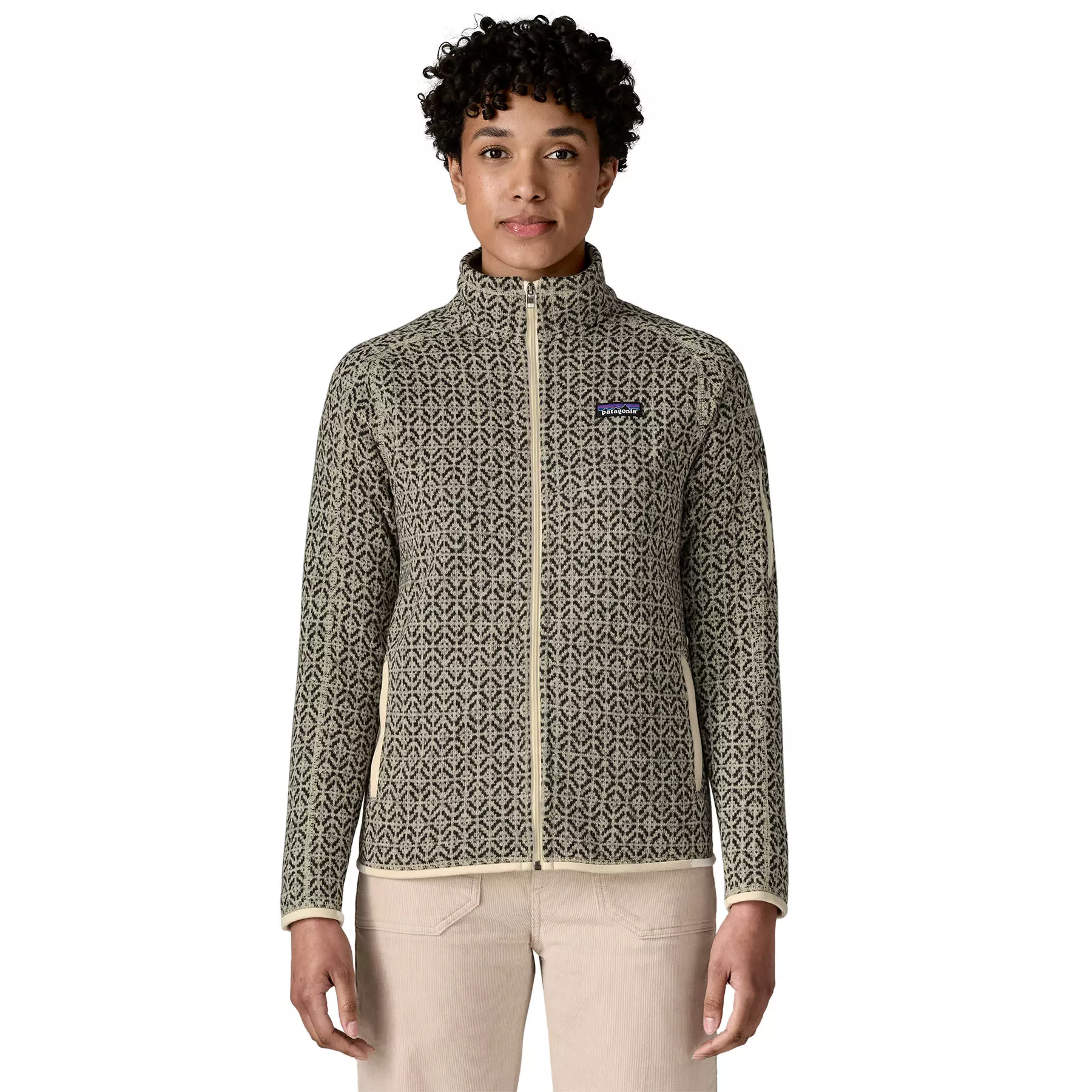 Това топло яке с цип от 100% рециклиран полиестер съчетава естетиката на плетен пуловер с лесната грижа на полара Better Sweater. То е боядисано с процес с ниско въздействие, който намалява употребата на багрила, енергия и вода в сравнение с конвенционалните методи за боядисване на пух. Произведена е във фабрика със сертификат за справедлива търговия Fair Trade Certified™.