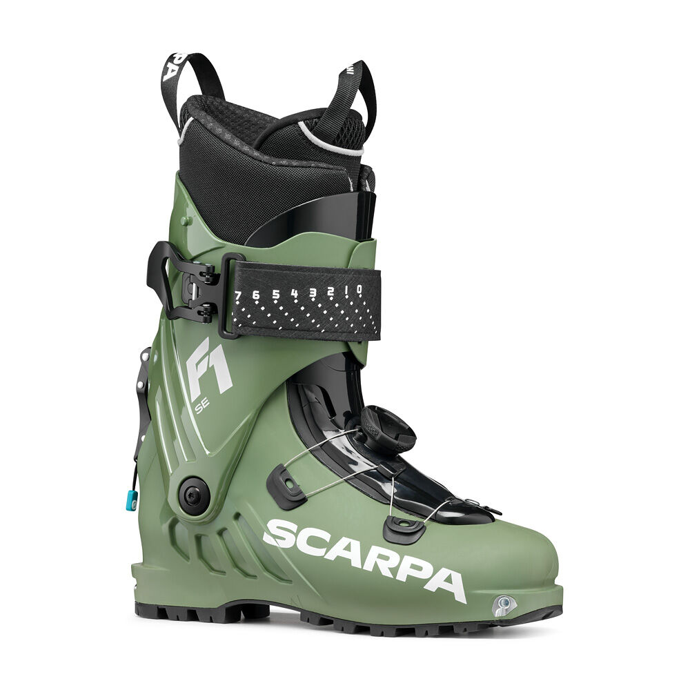 SCARPA F1 SE е създадена за алпийски туринг — за планинари, които искат бързо изкачване без компромис в контрола и увереността при спускане. С тегло приблизително 1380 г за чифт (≈ 690 г на обувка),моделът е сравнително лек в своя клас.