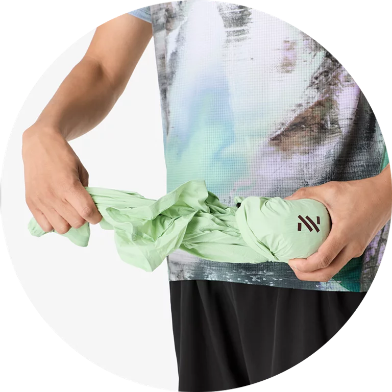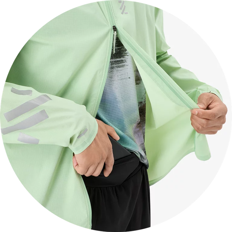 Якето Nnormal Trail Wind е изключително леко и ветроустойчиво, създадено за планинско бягане и активности на открито. Изработено от 100% рециклиран, мек на допир полиестер и с тегло около 123 г, то осигурява отлична компактност и свобода на движение. Двупосочният цип отпред позволява лесен контрол на вентилацията, а светлоотразителните детайли гарантират видимост при слаба светлина. Благодарение на регулируемата качулка и дизайна, който позволява якето да се прибере в собствения си джоб, то е универсален избор за непредвидимо време по пътеките.
